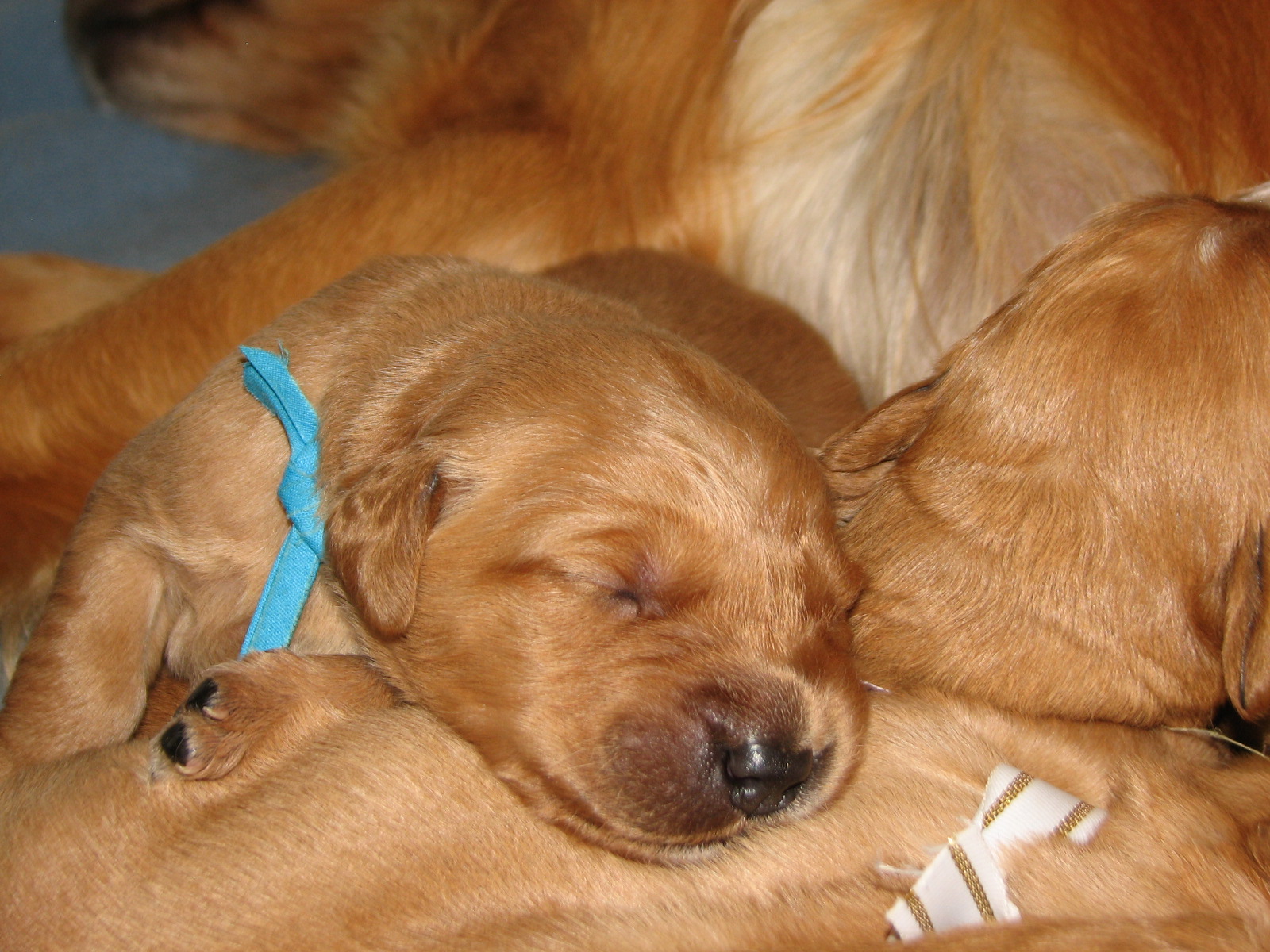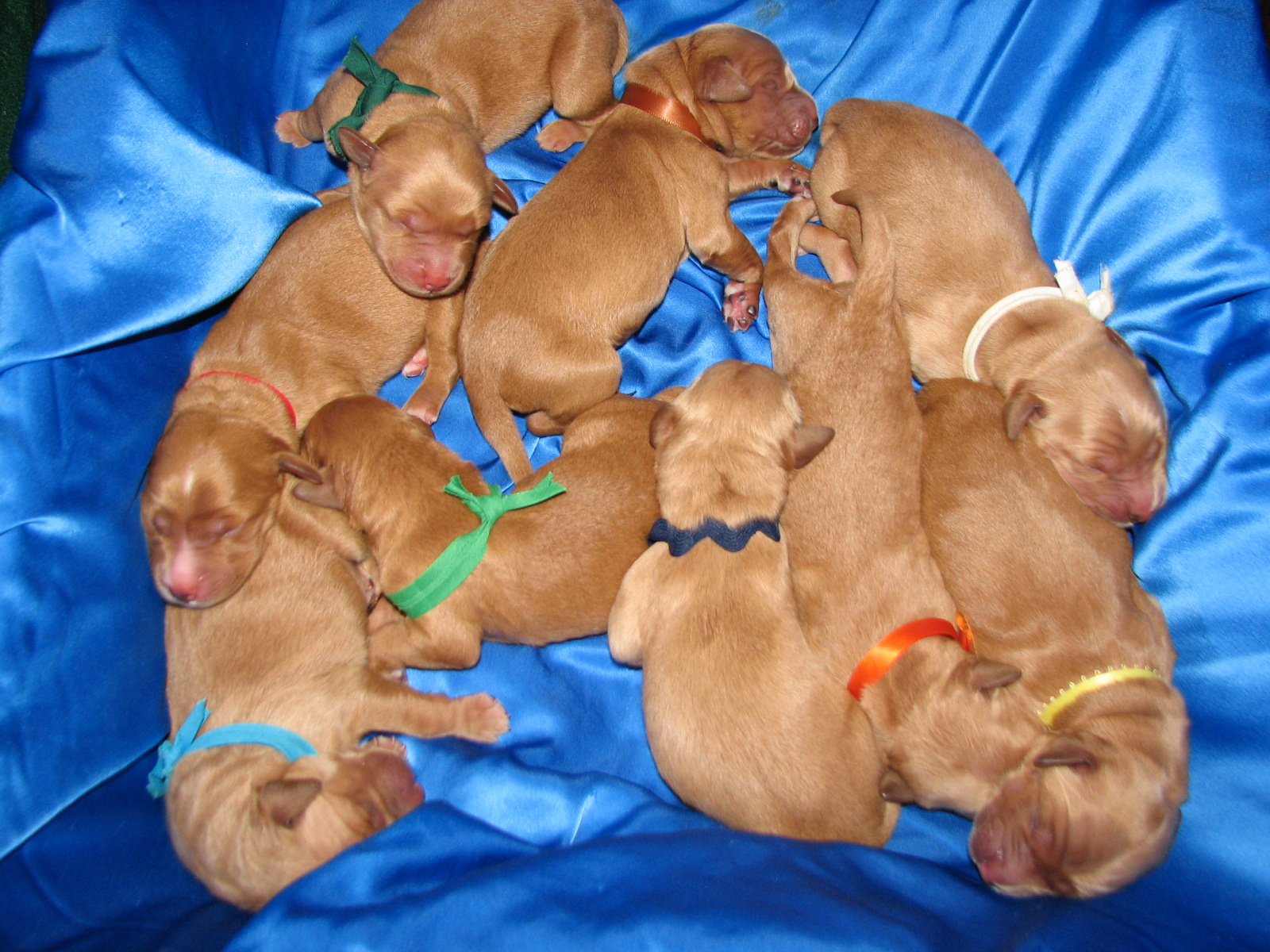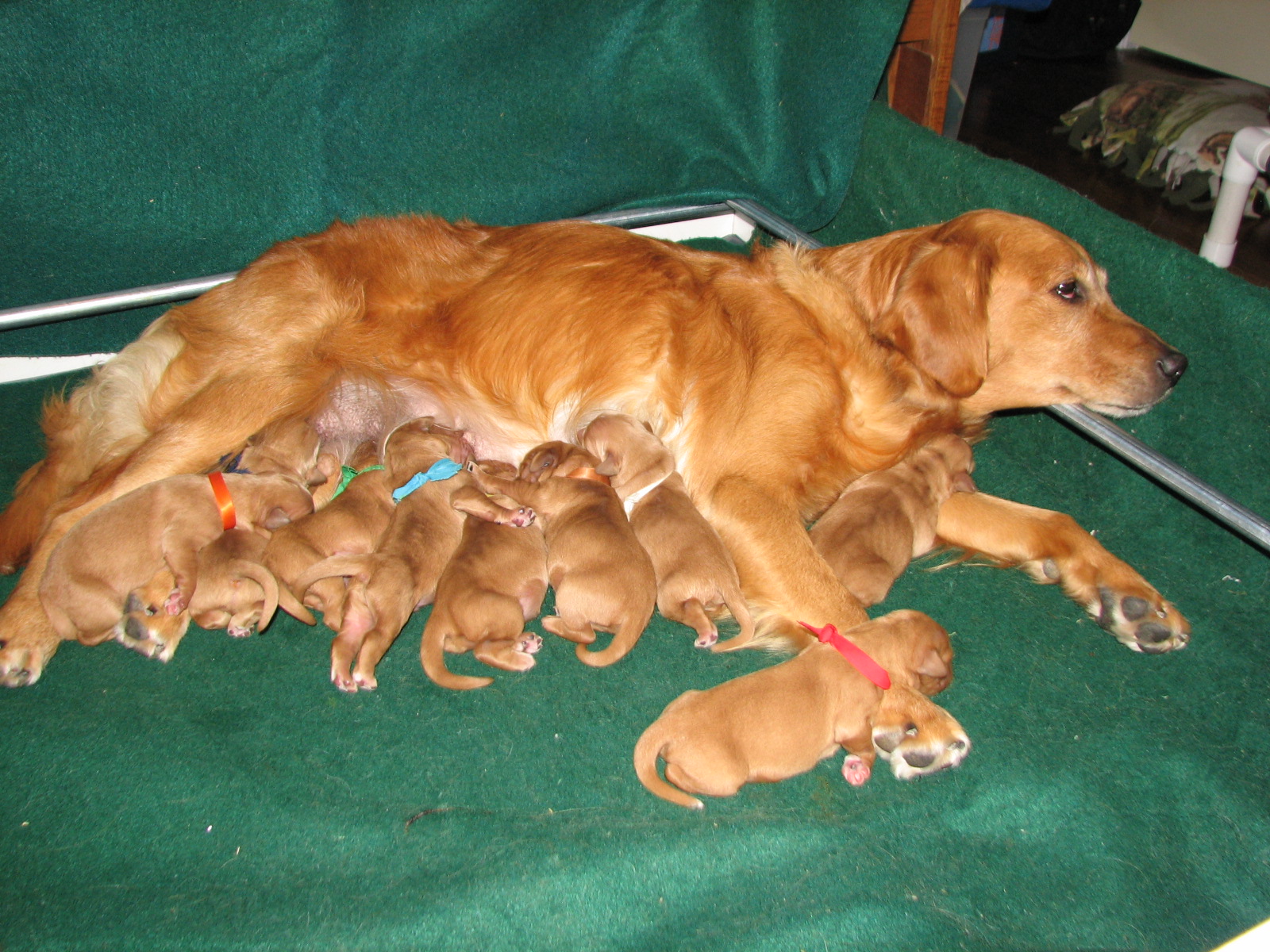 Pet Tails River x Murphy Litter 2014 First week 1/29/2014 Welcome New Family River x Murphy Litter! 7 boys 2 girls We are now 5 1/2 weeks old and Growing Strong Mom can’t feed even if she wanted laying down. pile of pups. River so tired. love the pups sleeping on her arms. We’ve arrived Day 1 Chaos in the box Day 1 Like Loading...