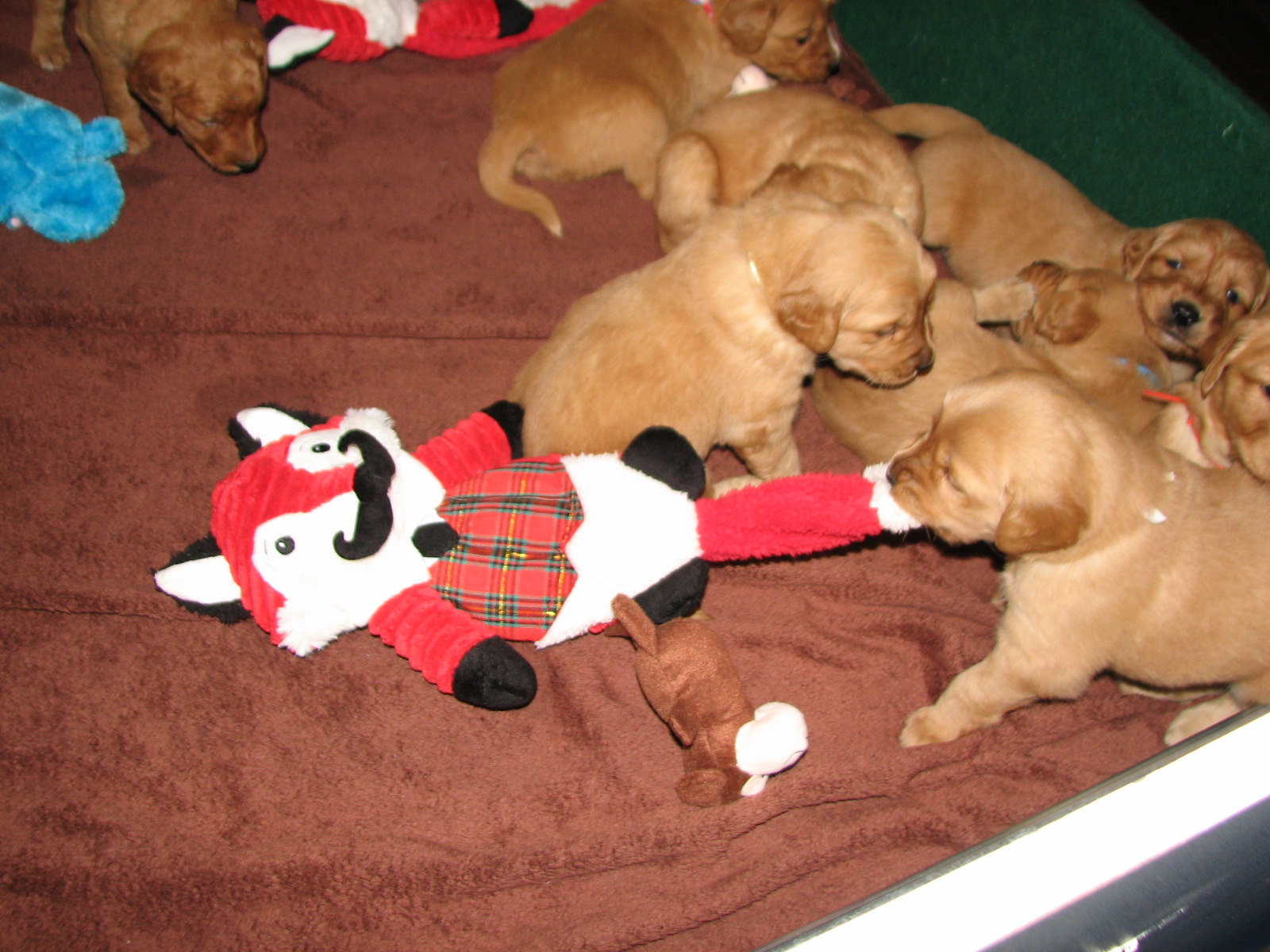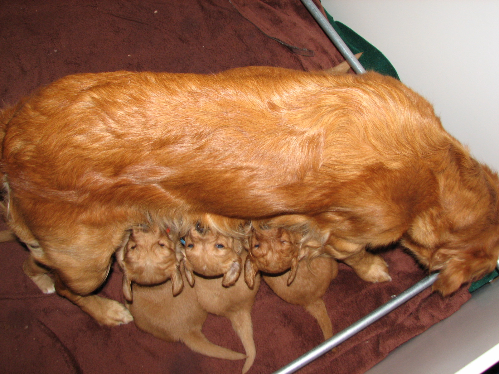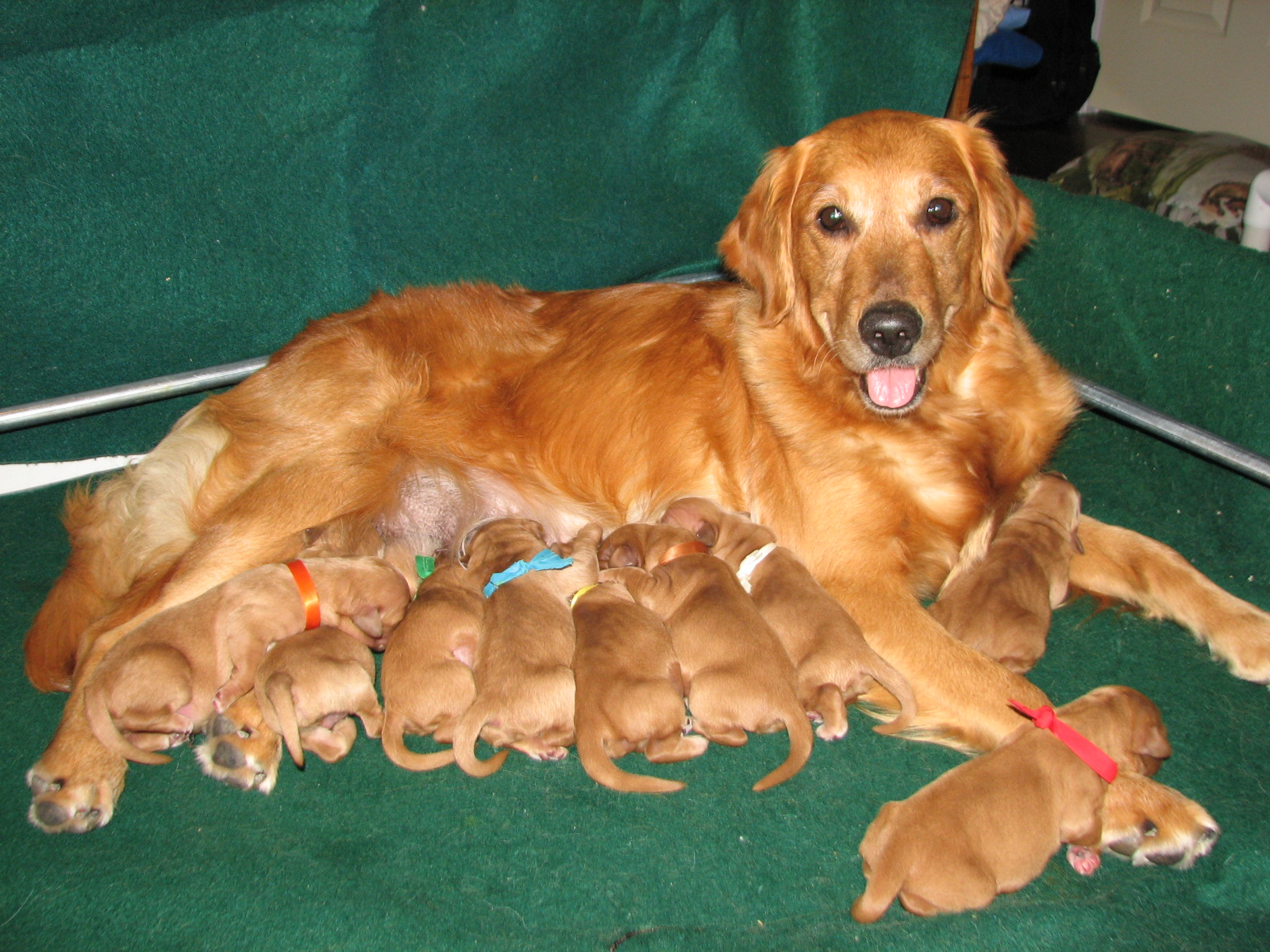Pet Tails River x Murphy Litter 2014 First week 1/29/2014 Welcome New Family River x Murphy Litter! 7 boys 2 girls We are now 5 1/2 weeks old and Growing Strong Mom can’t feed even if she wanted laying down. pile of pups. River so tired. love the pups sleeping on her arms. We’ve arrived Day 1 Chaos in the box Day 1 Like Loading...